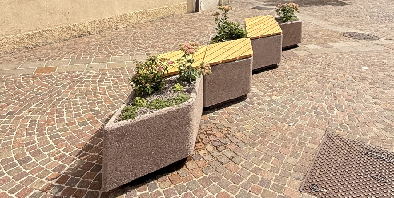 EGNA ist nicht nur funktional, sondern prägt auch das Erscheinungsbild eines Ortes. Die reduzierte, zeitlose Formensprache wirkt ruhig und hochwertig. Sichtbetonflächen mit optionalen Holzsitzauflagen bringen Materialehrlichkeit und gestalterische Wärme in den urbanen Kontext. EGNA fügt sich sowohl in moderne als auch historische Umgebungen harmonisch ein.