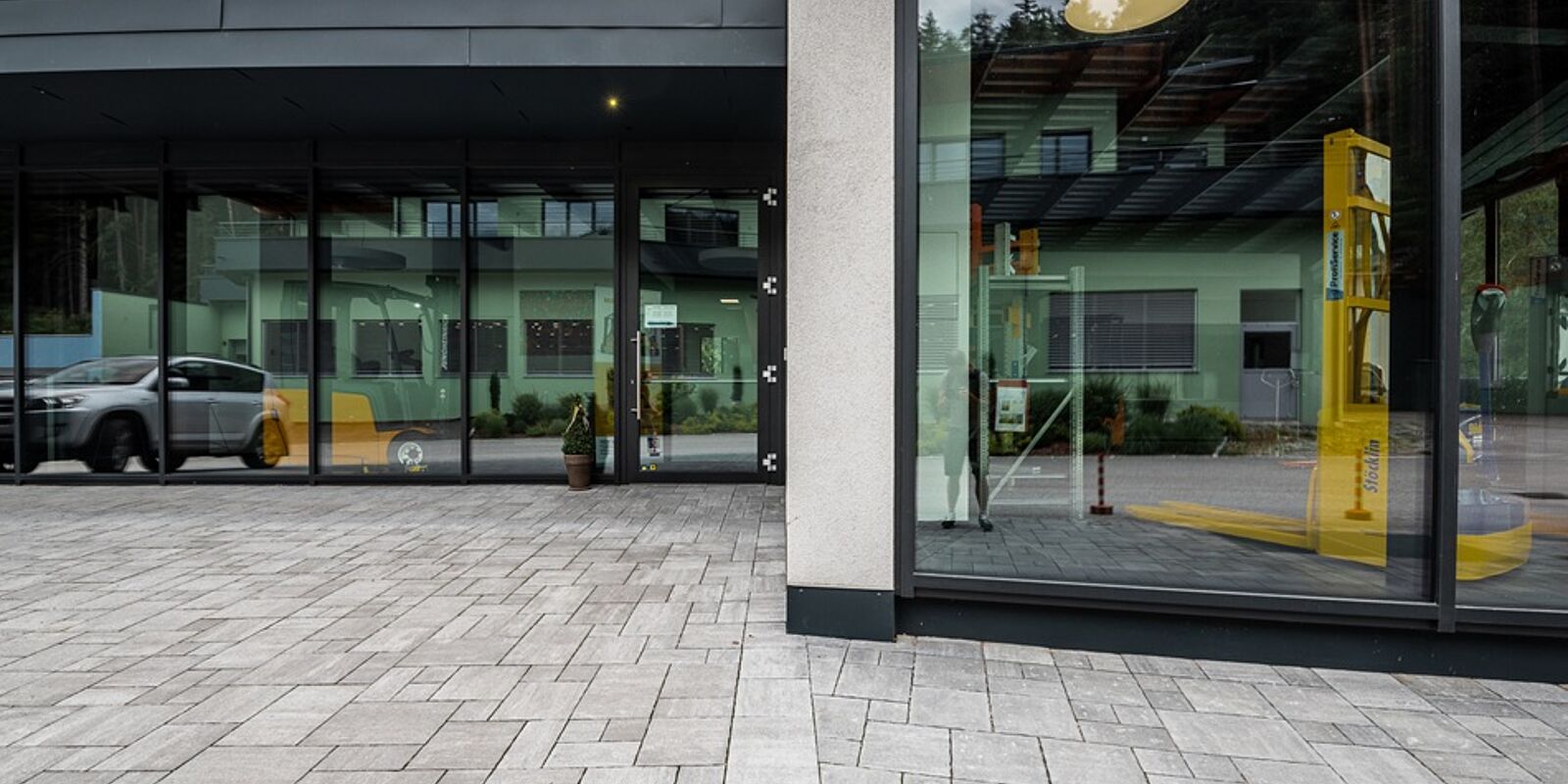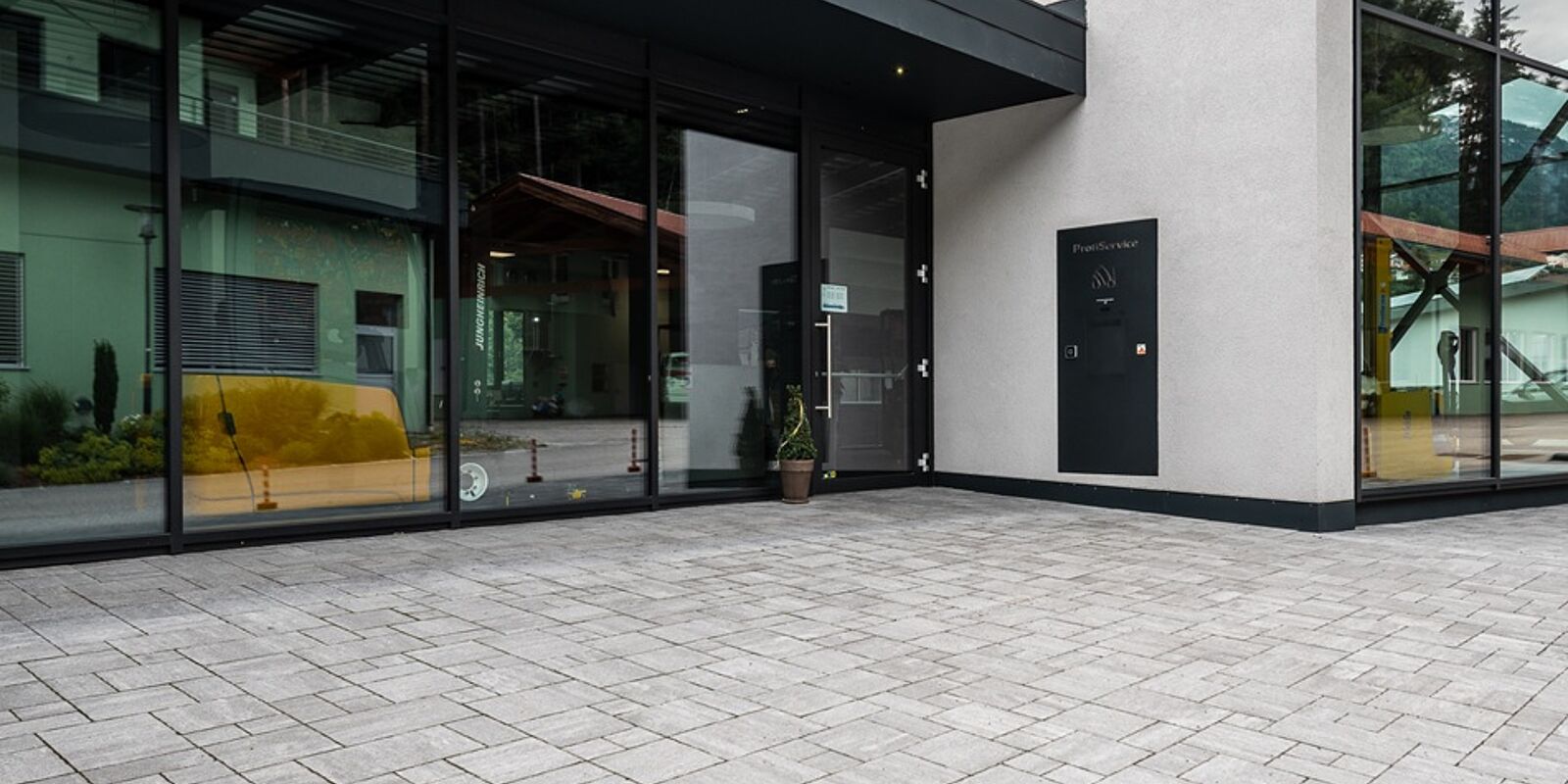 Für das Betriebsareal von Profi Service in Rodeneck wurden Pflastersteine des Typs Castello Nova in der Farbe Vulcano geliefert.