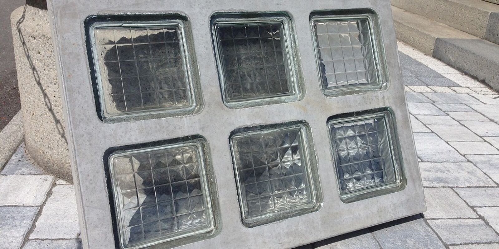 Glasbetonelemente dienen als saubere Abdeckung für Licht- und Kellerschächte und werden auf Maß gefertigt. Die Anordnung der Glasausteine und der Entlüftungselemente wird auf Wunsch gestaltet. Zudem besteht die Möglichkeit des Einbaus von Schuhabstreifern, Einstiegsluken und weiteres.